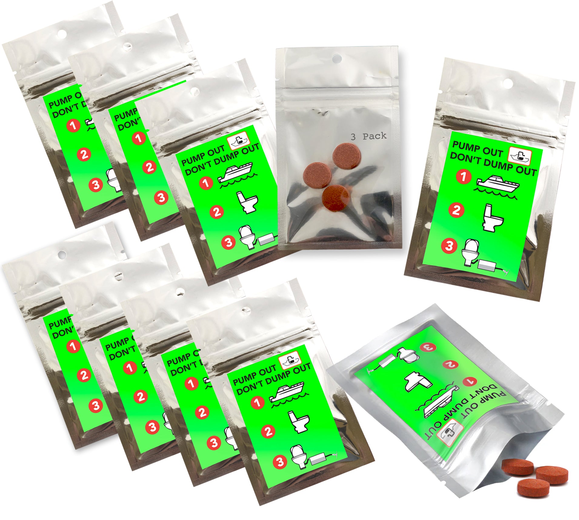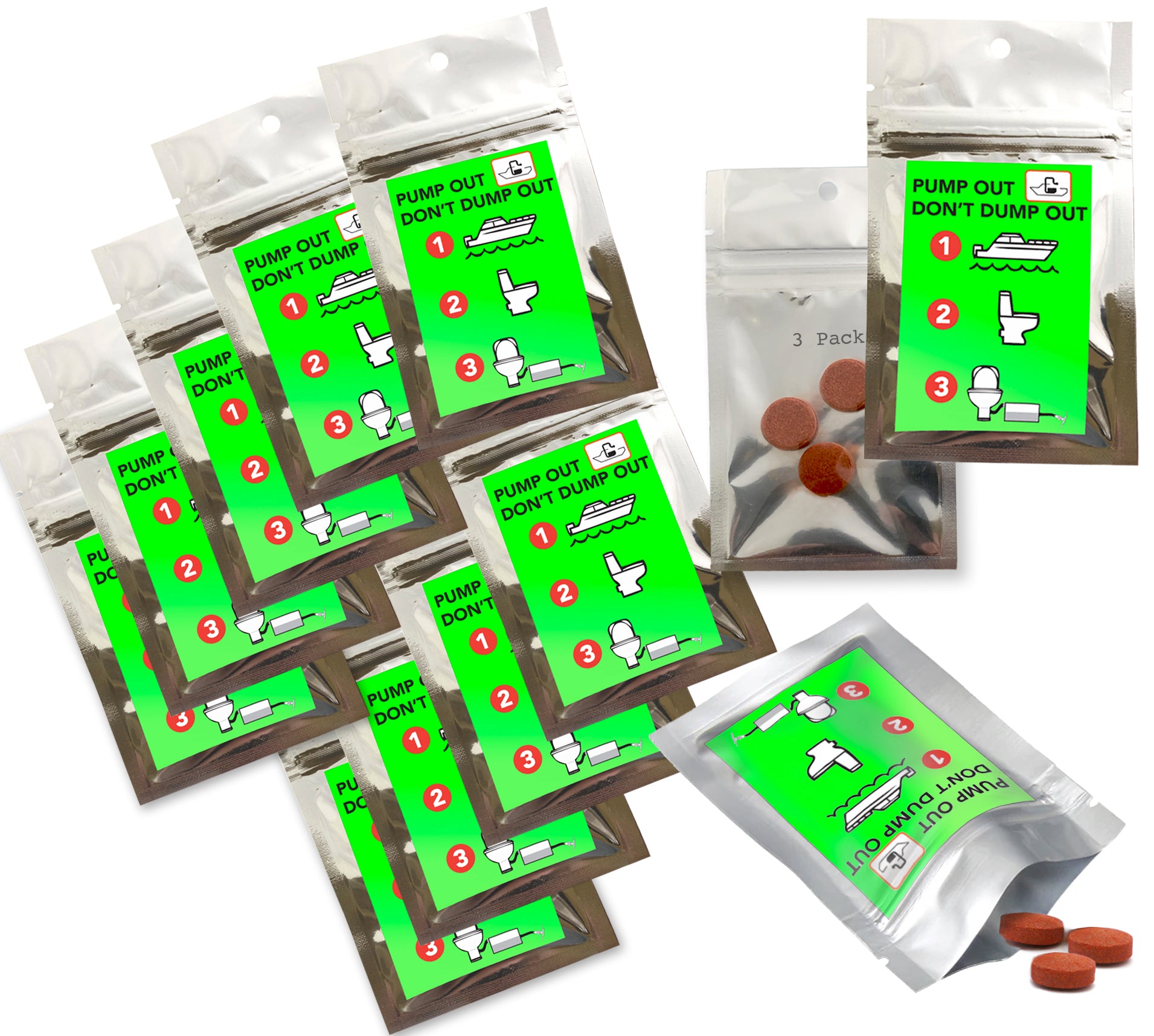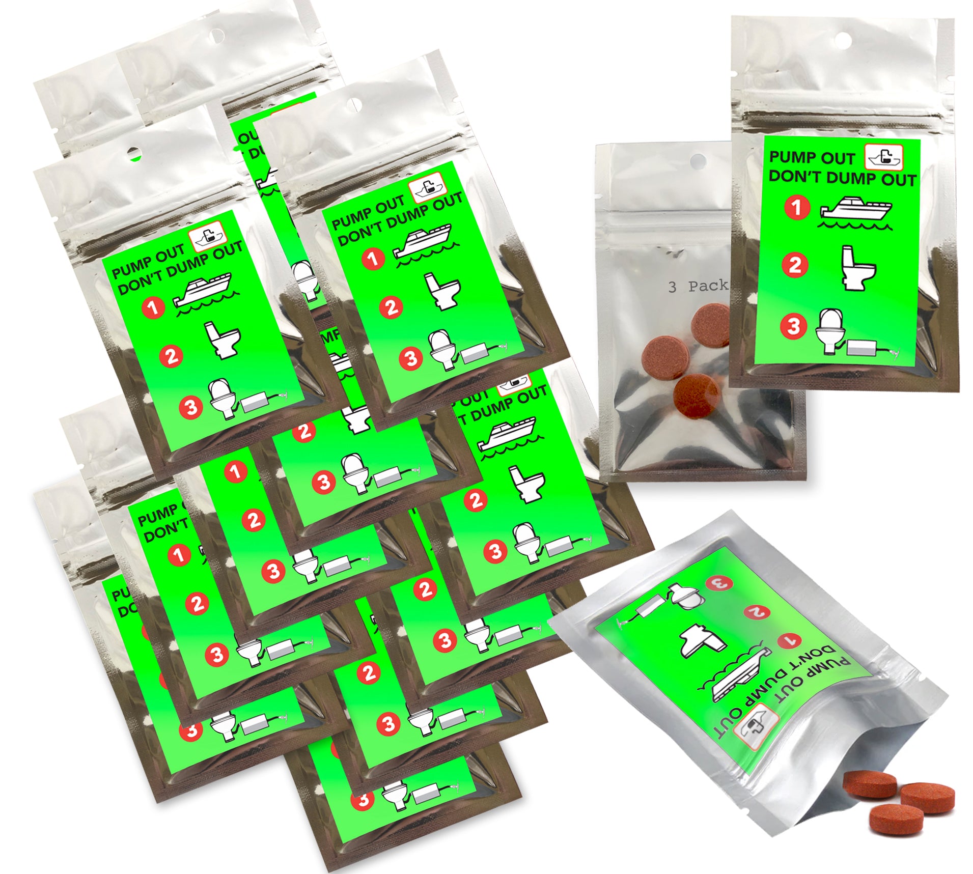 3 Pack of Marine Water Holding Tank Fluorescent Visual Dye Tablets | Tracer Dyes that meet EPA Standards
