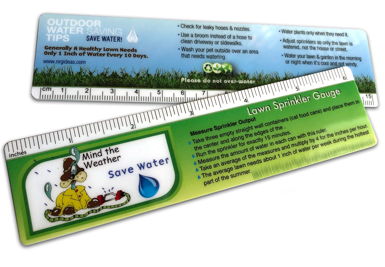 Water Ruler Water ruler with die cut drip gauge. Measure the diameter of a drip to know how much water is being wasted over a three month period.
