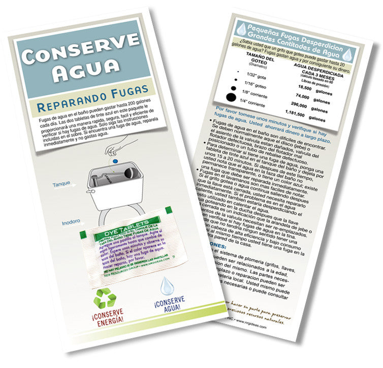 Save money and save water by detecting silent leaks with our package of 2 dye tablets. Simply drop tablet in tank and know in a few moments if a repair needs to be made. Tablets are non-toxic and FD&C safe. Instructions in English and Spanish. One of the most effective water conservation measures you can take.