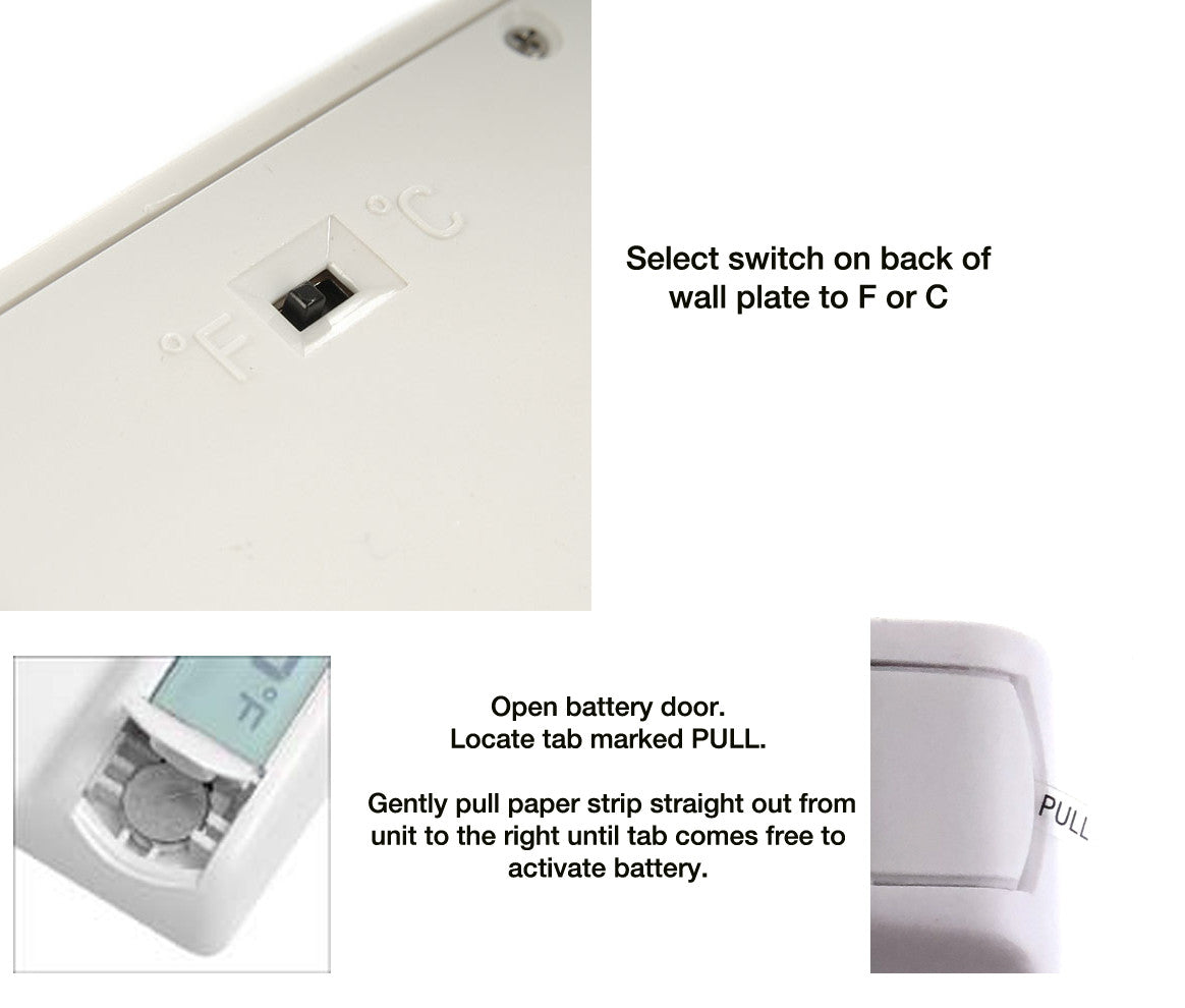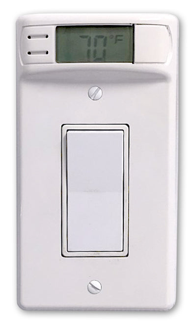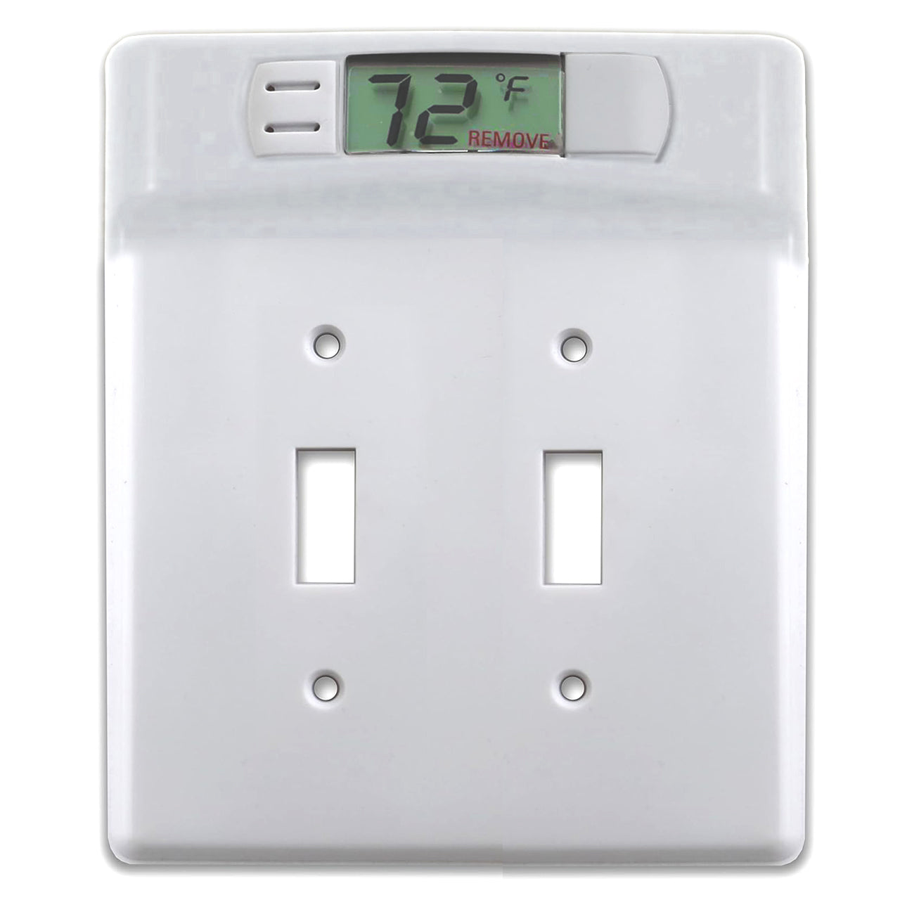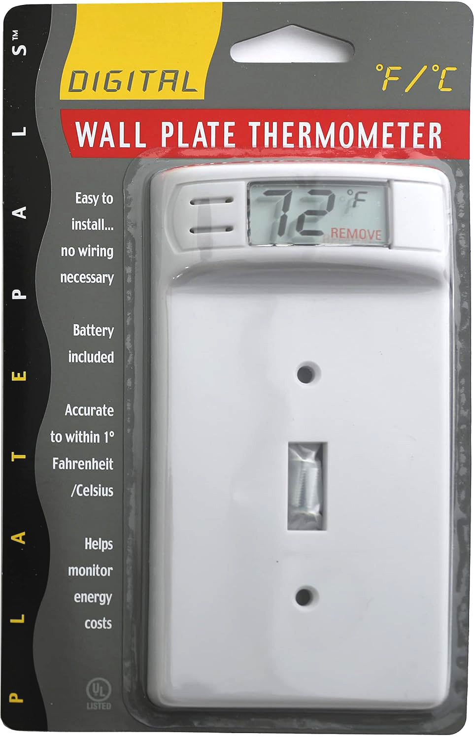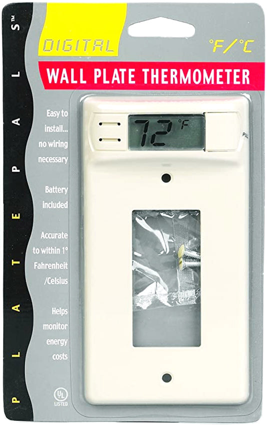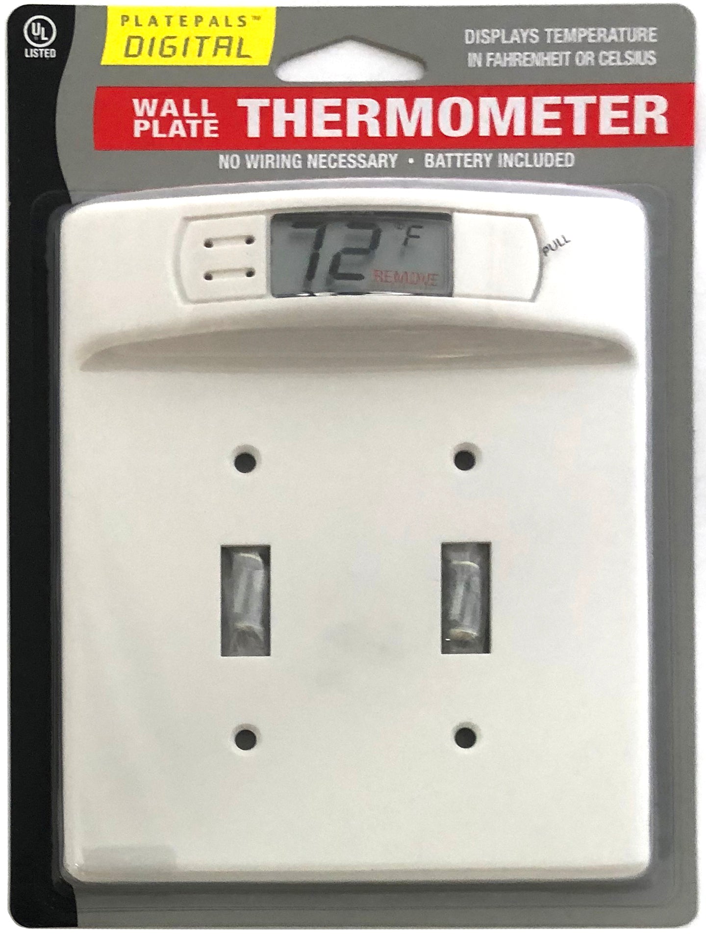 White color, Digital Platepal wall plate thermometer. Walk into the room, turn on the light and instantly know the temperature. Installs in minutes and allows you to monitor the room temperature very conveniently in any room, home or office. Displays temperature in Fahrenheit or Celsius. no wiring necessary, battery included. Simply replaces existing light switch wall plate. Great for children's rooms and baths. For a healthier, safer room environment. Accurate temperature readings in every room throughout the house.