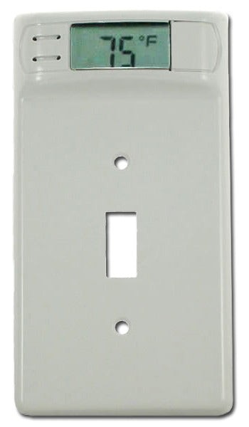 Monitoring the temperature of a room has never been easier. This convenient wall plate is equipped with a built-in digital thermometer, so you can check the room temperature every time you turn the lights on or off. Installation takes less than a minute; simply remove the old wall plate and replace it with the thermometer version. You won't have to touch a single wire. These wall plates are accurate within 1°F. and includes an easily-replaceable button-cell battery. Not intended for outdoor use.