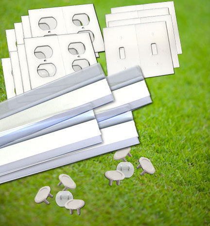 Draft stopper kit for home insulation from weather and sound. Protect and save your home with this simple eco kit that includes: A Complete set of 4 Door Sweeps for the home. Keep the heat inside and stop drafts. Each clear door bottom has two sided tape for easy attachment to doors in and around the home. Each sweep is 36" long and 1 5/8" wide. Installs easily between door bottom and threshold, for interior or exterior doors. Seals out door drafts, dust, pollen and insects. Great for sealing off unheated rooms within the home (entrances to basement, attic, or garage) Door sweeps weatherproofs and soundproofs. • All season – Seals out cold, drafts and insects Electrical Outlet caps, Plastic, white 1″ × 1.25″ – 8 Pack Safety Outlet Caps, Prevents Electrical Shock, Prevent small metal objects from entering live outlets. Keep children safe in your home while insulating outlets that aren’t being used. A simple and effective solution. This kit comes with 16 outlet gaskets, Fits standard 2 outlet electrical box. 8 Light switch plate gaskets for standard single switch.Gaskets insulates and saves energy from outside conditions. Weatherproof your home, reduce drafts and save Energy and money. weatherize and save. Reduce Reuse and Recycle.