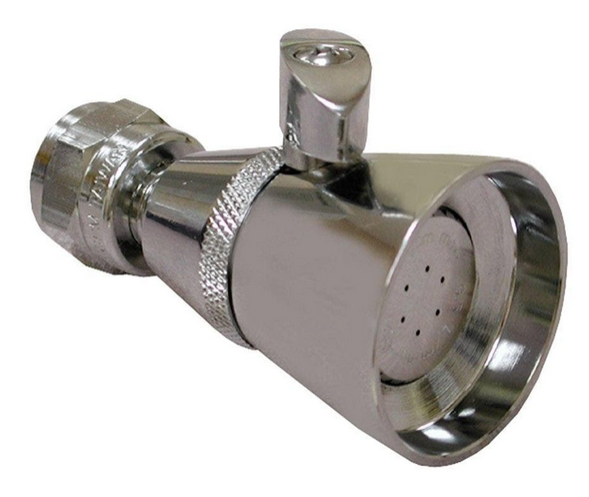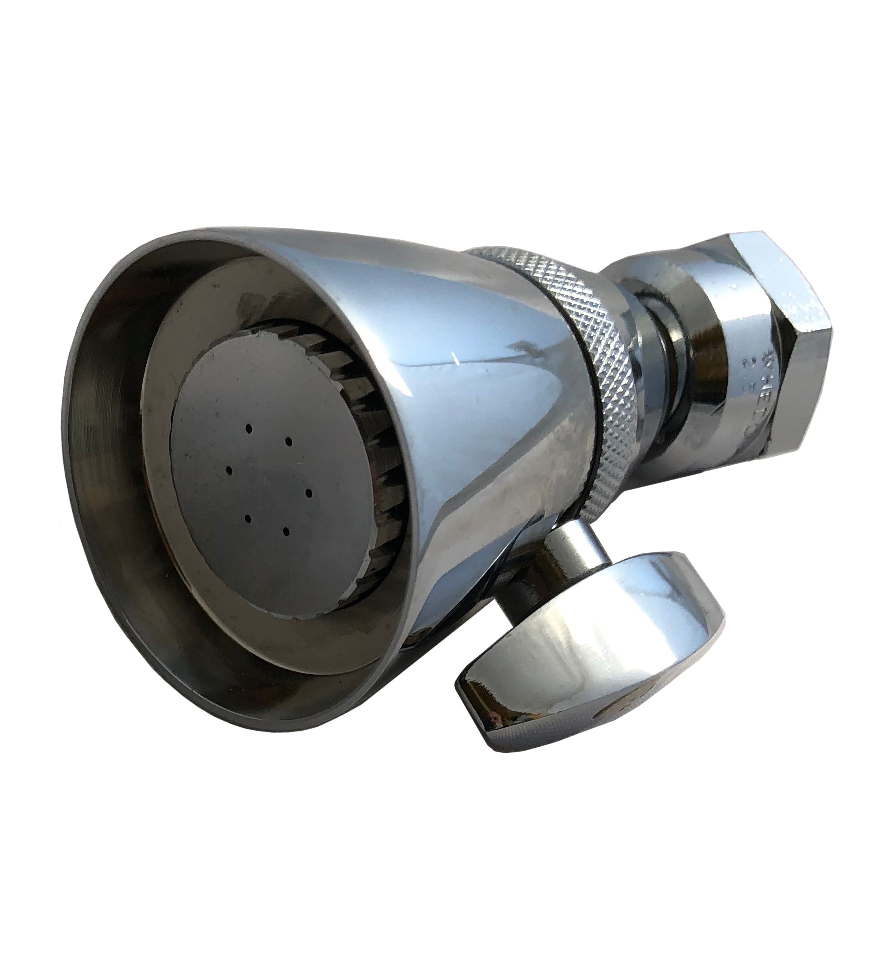 High velocity spray shower - good rinsing force, Solid brass, chrome plated --------- Features:---------- - single spray pattern - High velocity aerating shower - good rinsing force - Fits standard shower arms - 1.75" diameter nozzle - 1/2" IPS connection - Hand Installation with External lever easily adjusts spray from fast fine streams to a soft slower flow. Provides invigorating spray using 2.5 gpm. Includes the Power Boost Advantage, a series of brass restrictors which allows you to easily adjust the flow rate and performance of your shower, ensuring a great shower even in low-pressure. 1/2 in Female connection, installs easily on all standard shower arms.
