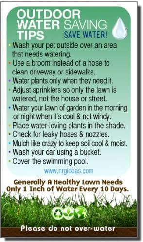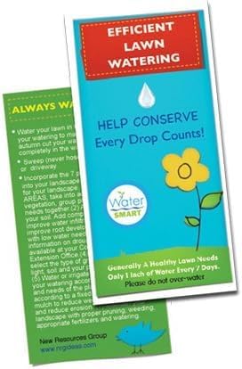 Top 10 Water Saving tips magnet to keep in and around the home. Lawn watering guide: A handy colorful guide to know when and how to water your lawn.