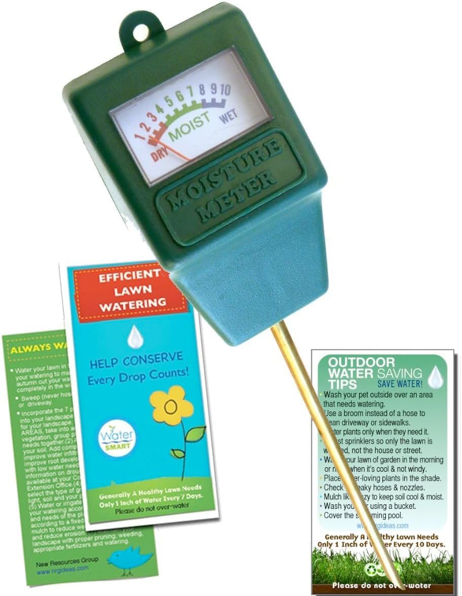 The Moisture Meter instrument measures the moisture content of soil, indicating when it is time to water your plants. Three various zones are indicated on the top of the meter to indicate the level of moisture needed for various types of plants. Moisture Sensor lets you know the humidity of your soil. The easy to read graduated dial indicates if the soil is dry, moist or wet so that a lawn or garden can be watered accordingly. Save water and save money with this durable conservation aid. Instruction card included for the soil moisture sensor.