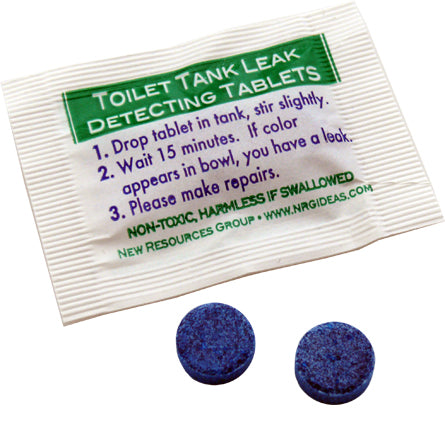 Save money and save water by detecting silent leaks with our non-toxic blue dye tablets. Simply drop tablet in tank and know in a few moments if a repair needs to be made. One of the most effective water conservation measures you can take. The leak detecting tablet and custom card make this a perfect item for governments, utility companies, and other organizations interested in promoting water saving.