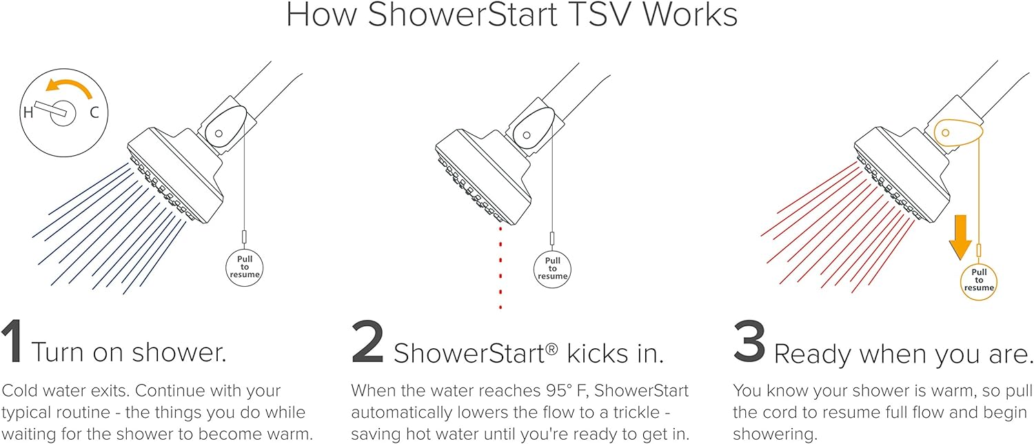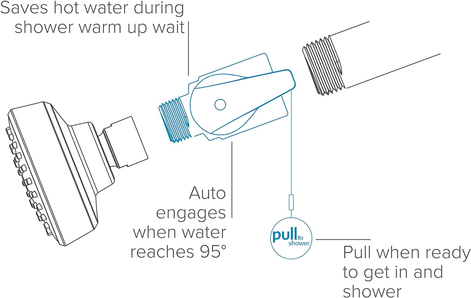 ShowerSmart lets you wait for your shower water to warm up without worry about wasting hot water when it arrives. As soon as the water reaches 95° F (35° C), ShowerSmart slows the flow to a trickle so that your shower water is warm and waiting, not warm and wasted.