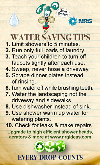 Top 10 Water Saving tips to keep in and around the home. Save water inside and out with this simple and effective magnet. The 2×3.5″ magnet is full color and features Splash the water dog and his water saving tips for the home and family. Simple and effective, Water Saving Tips at a glance!
